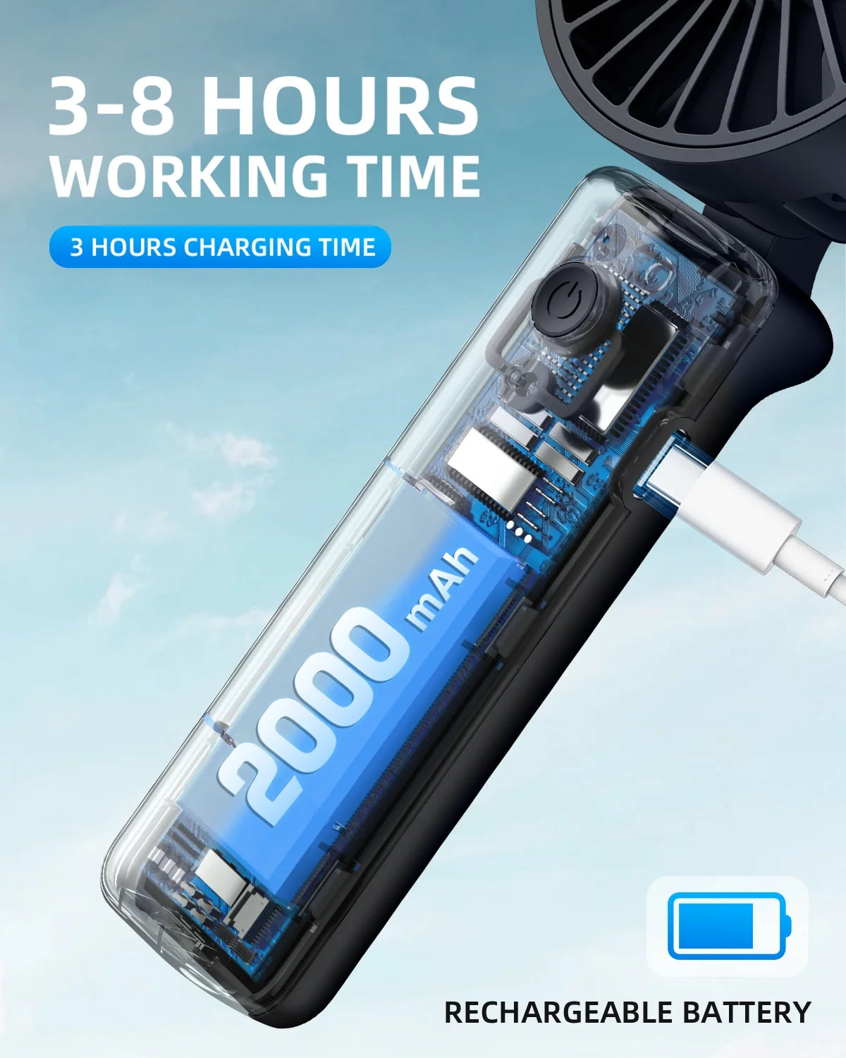 Frsara Portable Handheld Fan , Mini Desk Fan Foldable 2000Mah, 180° Ratotion , 3 -