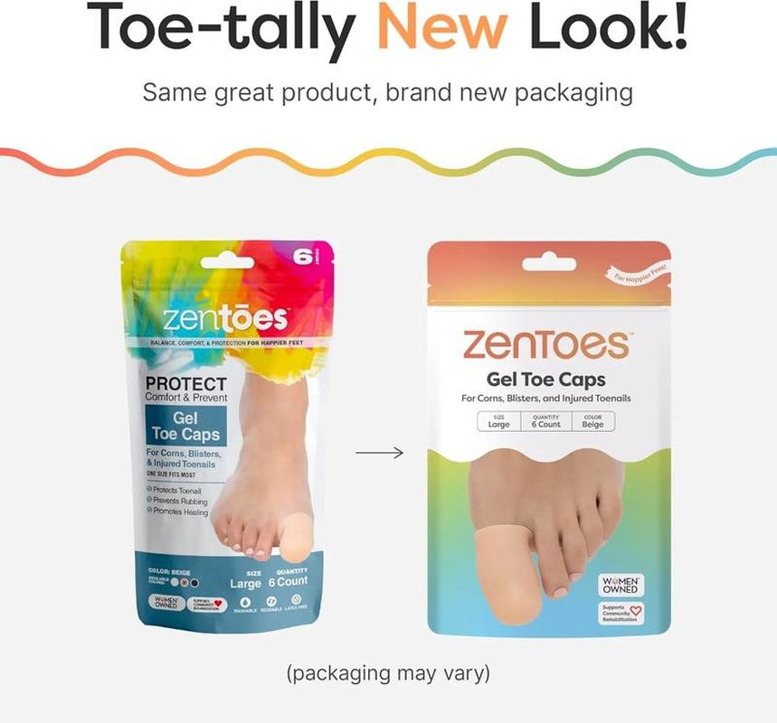 Gel Toe Protector Caps - Pack of 6 - Protect Ingrown Toenails, Blisters -