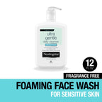 Neutrogena Fragrance Free Ultra Gentle Daily Foaming Facial Cleanser developed by dermatologists to gently cleanse sensitive skin. The fragrance free wash thoroughly cleanses without disrupting skin's natural moisture balance. This extra gentle face wash works in a new, skin-friendly way to leave you with clean yet naturally soft skin. The non-stripping formula thoroughly removes excess oil, dirt and makeup without over-drying or irritating skin. The hydrating face wash for sensitive skin is free of fragrance, soaps and dyes. The hypoallergenic cleanser rinses clean and is non-comedogenic, so it won't clog your pores. This daily cleanser is gentle on sensitive skin and makes a great addition to a daily skincare routine. To use, wet face, pump cleanser into hand and work into a foamy lather. Massage gently onto your face and rinse clean.